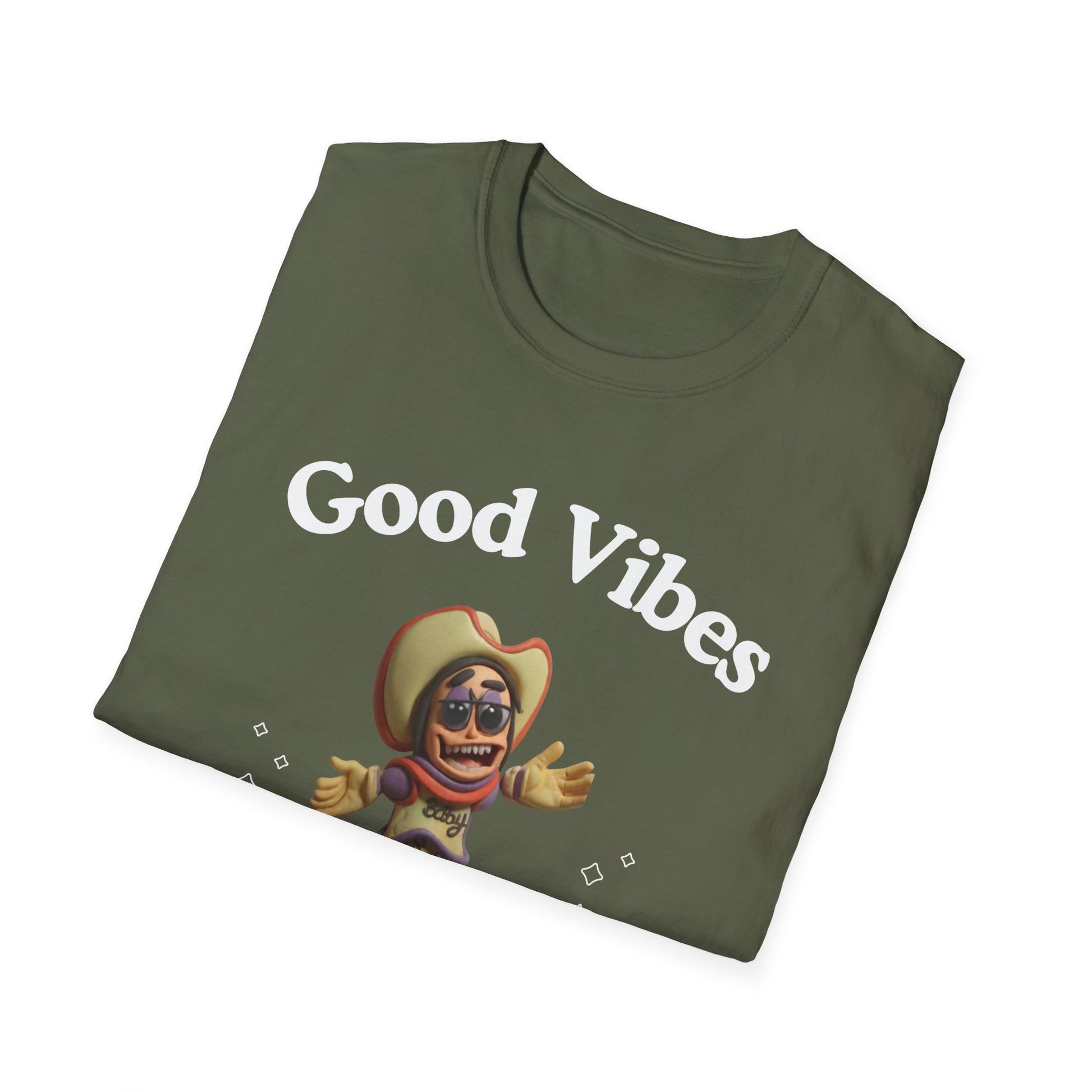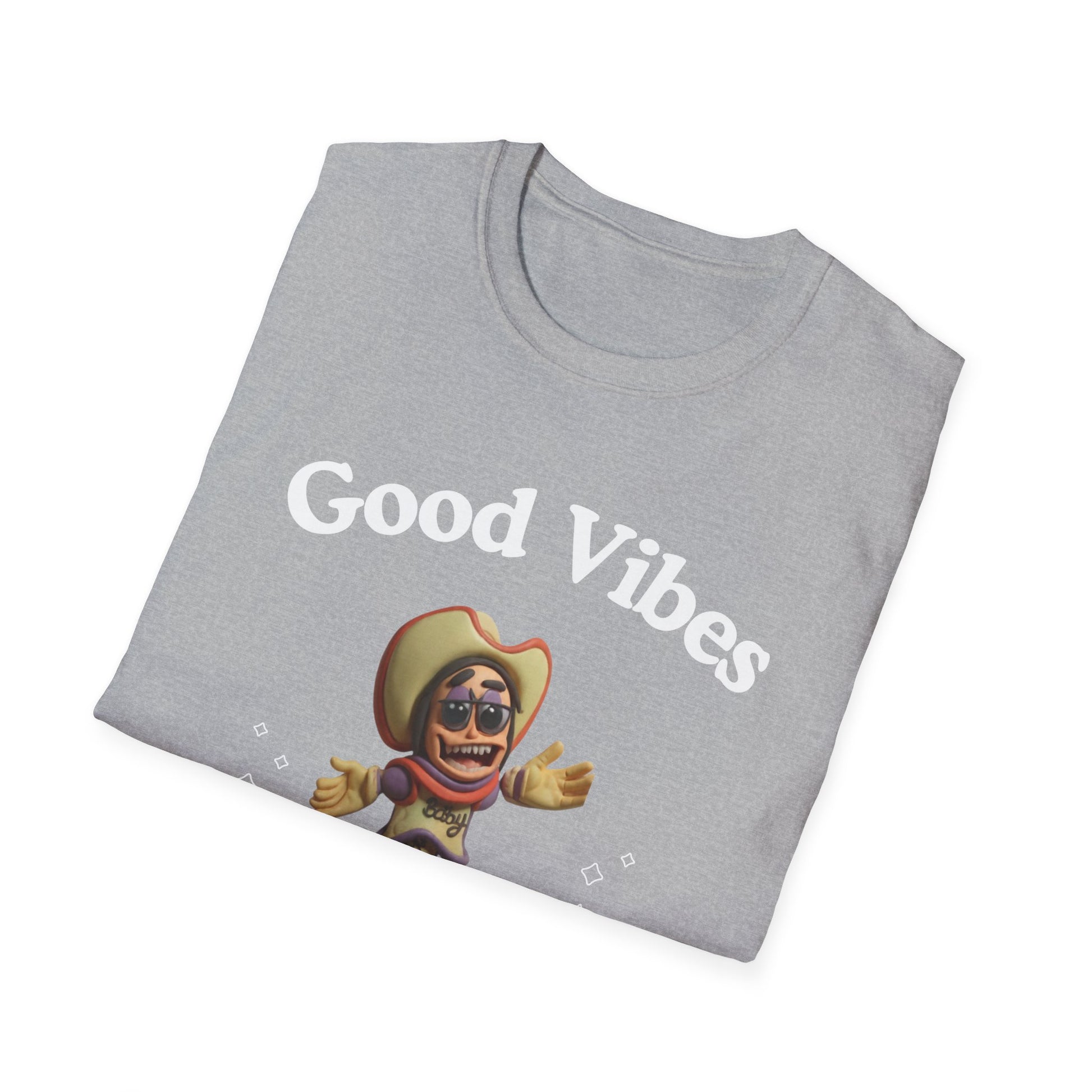 A soft, lived-in tee that feels like it’s already part of your wardrobe. Lightweight ring-spun cotton drapes easily, while the clean crew neckline and classic fit keep the silhouette simple so the artwork takes the stage. Front artwork shows a playful, sombrero-wearing character with warm, hand-painted tones; a subtle emblem rests on the upper back for a quiet, confident finish. Wear it to stroll neighborhood markets, hang at backyard gatherings, or layer under a jacket for casual nights out. The breathable fabric, tear-away label, and reinforced shoulder tape make it comfortable during long days and travel. This shirt ages gracefully — the print and fabric work together to tell a story with every wash.
